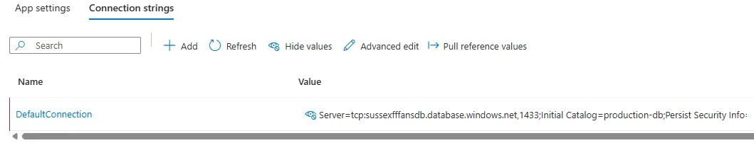 Database: sussexfffansdb.database.windows.net